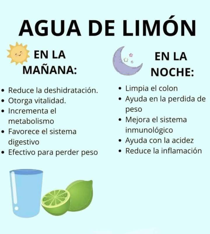 Incorporar el hábito de tomar agua con limón en la mañana y en la noche es una forma sencilla, económica y poderosa de cuidar el cuerpo. Mejora la digestión, fortalece las defensas, favorece la hidratación y ayuda a depurar el organismo de manera natural. Una pequeña acción diaria que aporta grandes resultados a largo plazo.