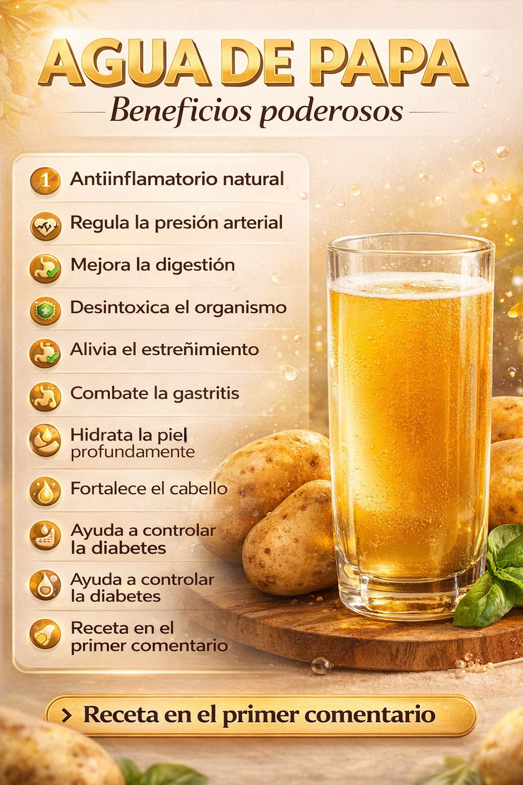 El agua de papa es el líquido que se obtiene al hervir papas o al extraer el jugo de la papa cruda. Aunque muchas personas la descartan, esta agua concentra una amplia gama de nutrientes: minerales como potasio, magnesio, fósforo e hierro, enzimas digestivas, antioxidantes, y vitaminas del complejo B y vitamina C.