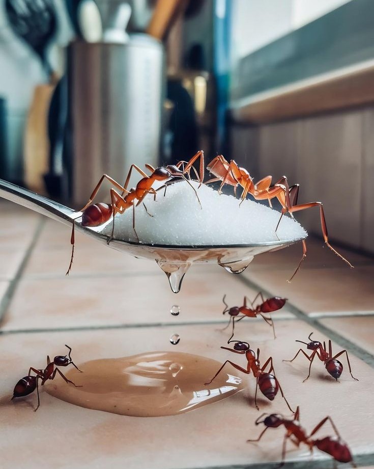 Once a scout ant finds food, it leaves behind a pheromone trail—an invisible scent path that guides the rest of the colony straight to the source. That’s why ants often appear in long, organized lines rather than randomly.
