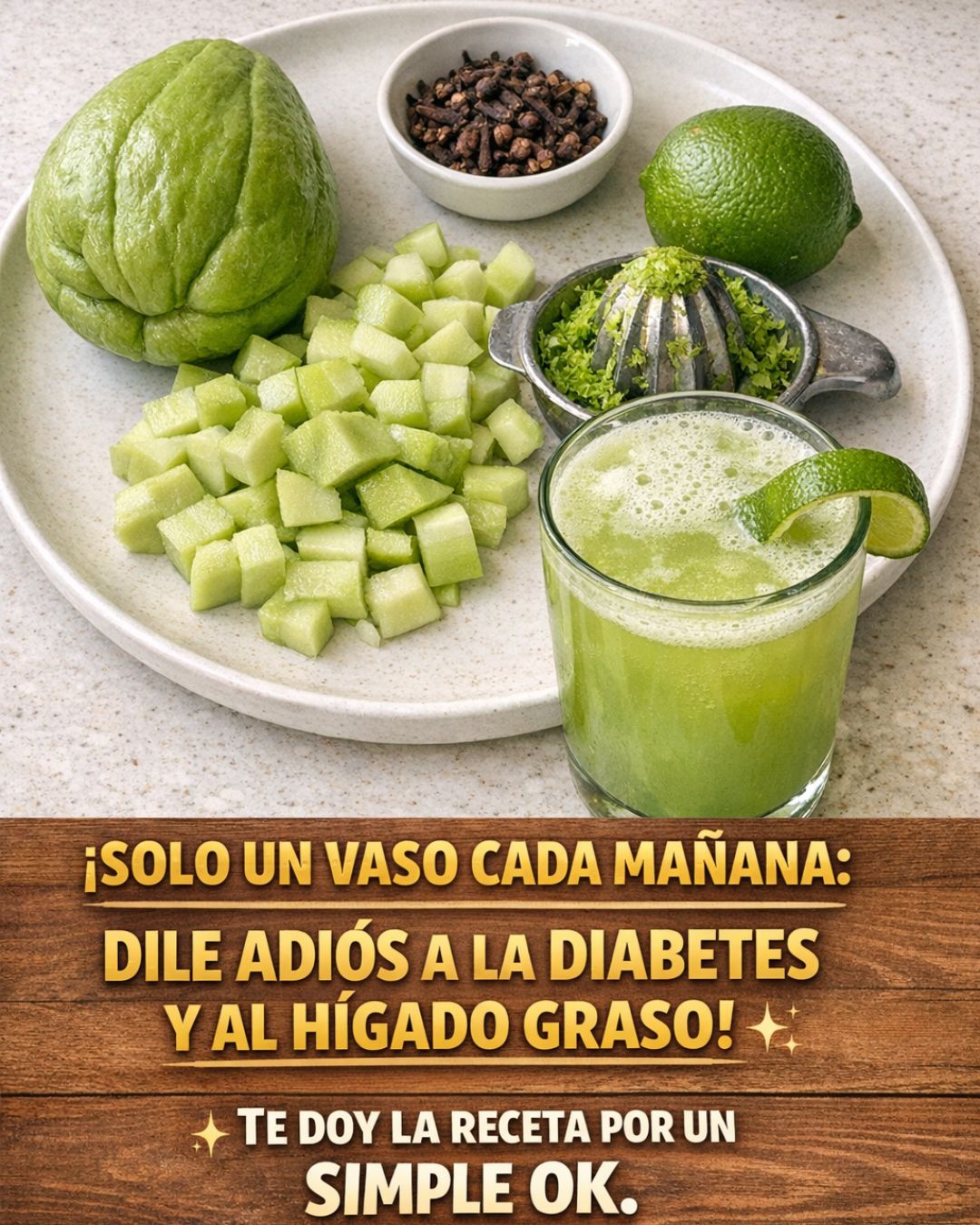 Esta bebida natural combina chayote (tayota), limón, clavos de olor y perejil, ingredientes sencillos, accesibles y ampliamente utilizados en remedios caseros por sus propiedades depurativas y circulatorias.