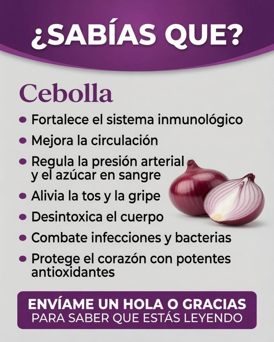 Sabías que la cebolla…..Para seguir recibiendo mis recetas, solo debes decir algo… ¡Gracias!